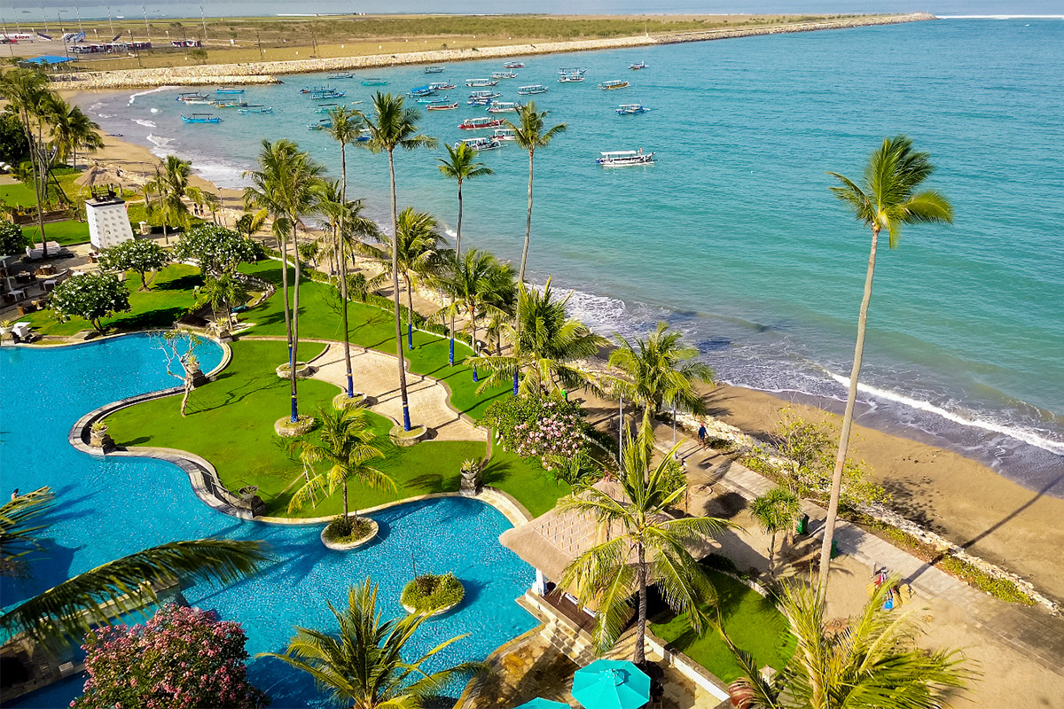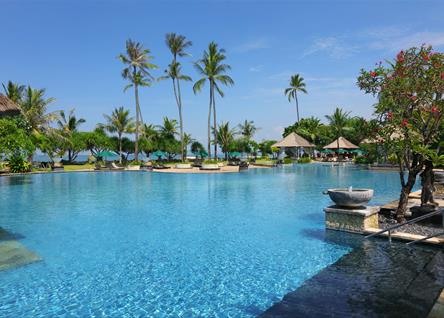 This tranquil beachfront resort in south Kuta occupies 10 hectares of tropical gardens and winding bicycle paths and is a one-of-a-kind hideaway showcasing the best of Balinese hospitality.